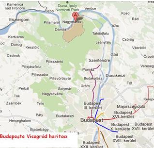 + Tren : Doğrudan tren yok. Şehir merkezinden : Tram 4 - 6 ve Metro - 2 ile ---> Nyugati Railway tren istasyonuna --> Nagymaros ‘a günlük 20 tren seferi var / 40 -60 dk periotlarla , saat 04 / 24 arası çalışır yol 52 km olup, 1 saat sürmekte ( 1120 huf ). Buradan 5 dk. Yürüme ile on dk. aralıklarla kalkan Ferry Boat nehir feribotuna ( 200 huf ) sonra Visegrada ulaşın.. Tren için bilgi hattı..... Toplam yol 1.5 saat dolaylarında.. Nagymaros : Visegrád'ın karşısında bulunan küçük bir yerleşimdir. Köy evleri ,tabiat ve yürüyüş için idealdir..