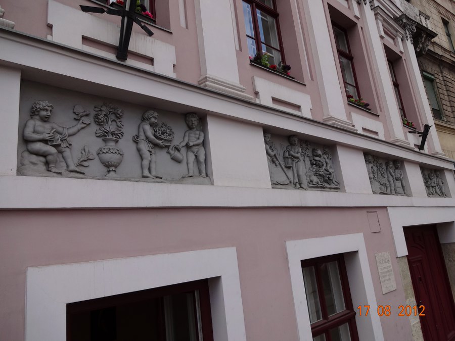Meydanda cadde üzerinde 4 mevsimin tasvir edildiği no.3 < Hikisch evi / foto > ve no . 4 teki Beyaz Haç hanı - evleri ; 18. Yy barok dönem evlerine örnektir..