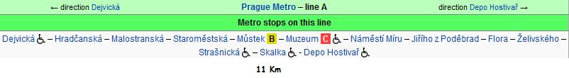 ** Muzeum ( Wenceslas Square – meydanı – üst ucunda ) - lines A ve C ‘ nin kesiştiği duraktır.