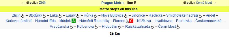 • Line B (Yellow) – Sarı hat : Černý ile Zličín arasında ( doğudan batıya ) 24 istasyondan ibarettir.Toplam yol yaklaşık 41 dk. dolayıdır.