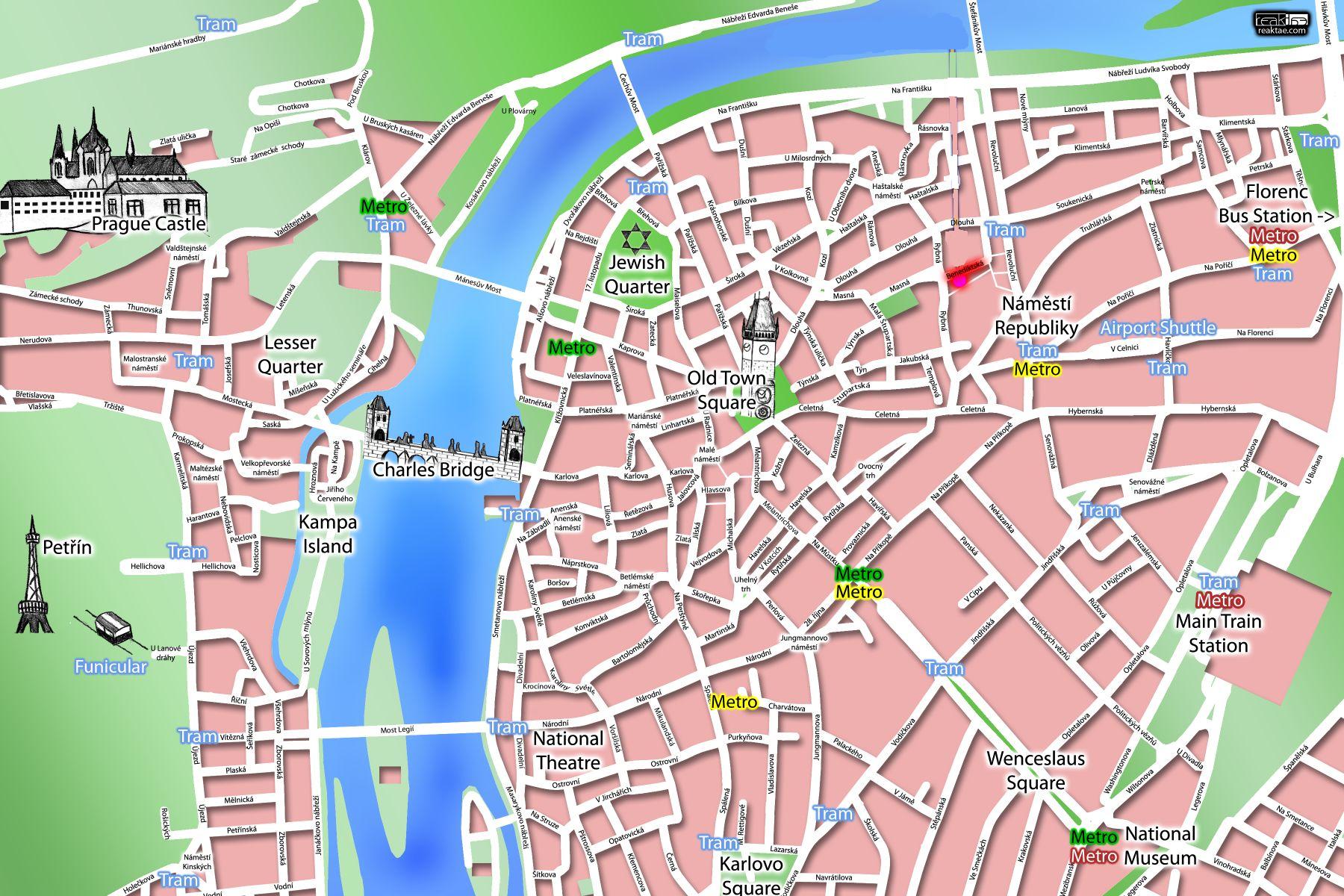Aşağıdaki haritada , Prag' da bazı önemli gezi alanlarının metro ve tramvay duraklarına olan mesafelerini ( yakınlığını ) inceleyebilirsiniz..