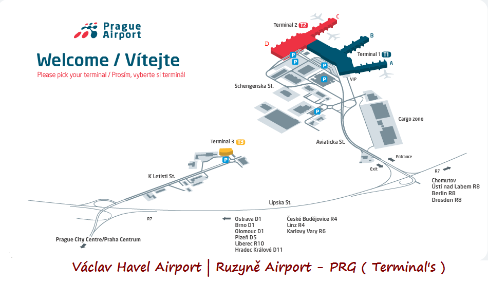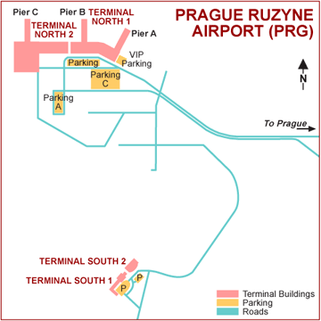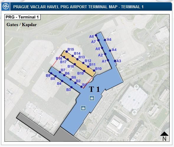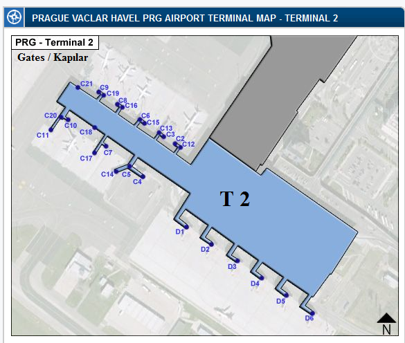 Schengen dışı tüm ülke hava yolu şirketleri Ruzyne - Vaclav Havel Airport Prague hava alanında , Kuzey / North Terminal.1'e inecektir ( kalkacaktır ).
