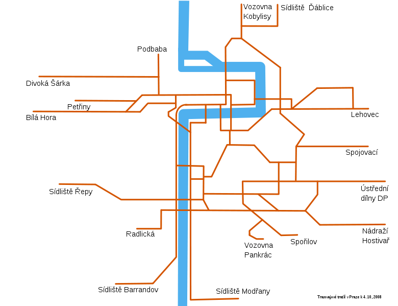 Not : * Prag demiryolu işletmesi ( PID ) tramvay güzergah ve duraklarında zaman zaman değişim yapmaktadır. 2010 yılı içinde 1-25 numaralı olan raylı sistemde < 15. hat bulunmamakta idi > var olan 24 adet tramvay hattı ; Haziran 2012 itibariyle ---> 1-26 numaralı olarak düzenlenmiş < 13-19-23 hatları yok > ve sayıca 23 olan tramvay hattına , 31 -36 numaralı yeni hatlar da ilave etmiştir ( toplamda 25 hat - 2012 ) .Hat karmaşalığı yaşamamanız için uyarıdır !