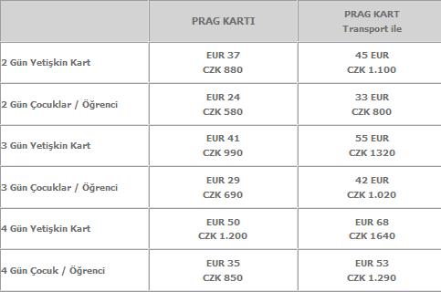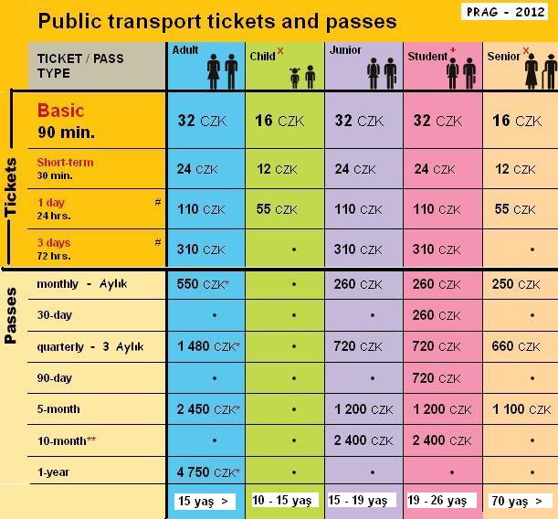 * Prag bilet ve ücretler tablosu ( tıklayın )