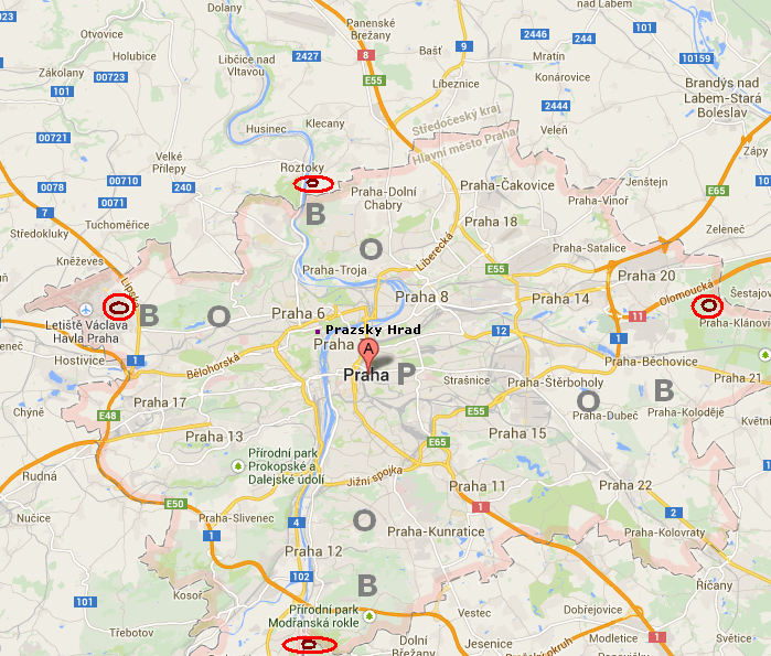 * Biraz daha detaylı olarak bu bölgelerin ( P O B ) ; kuzey - güney - doğu - batı sınırlarını gösterir haritayı inceleyin.Görüldüğü gibi Prag için oldukça geniş bir alanı içine alır.