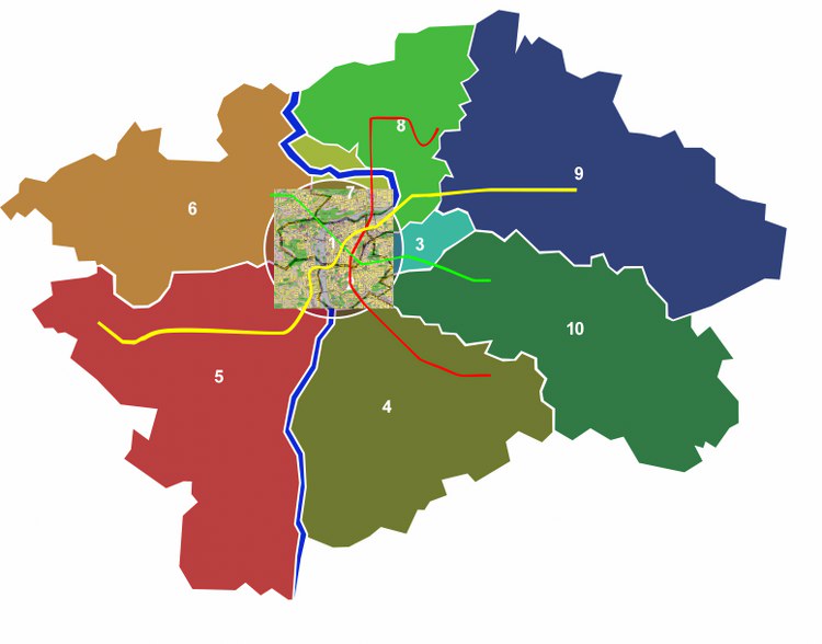 Kentte toplu taşıma ağının ulaşabilirliği göz önüne alındığında , kent'i gezi amaçlı 10 farklı bölgeye ayıralım.