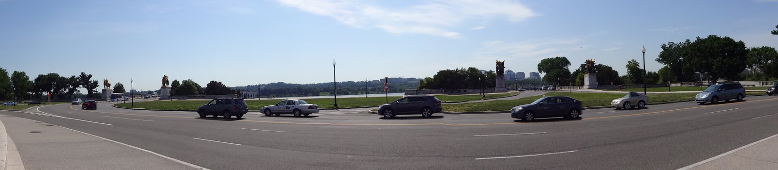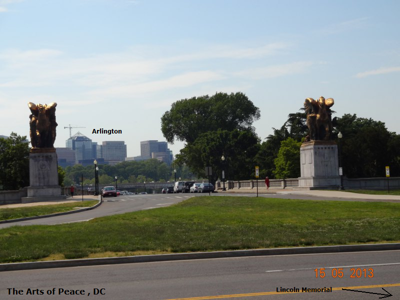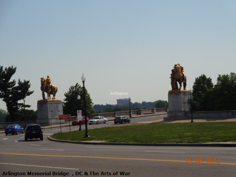 Arlington Memorial Bridge : Potomac nehri üzerinde bulunan , neoklasik taş kemer asma köprüdür. Anıtsal heykeller heykeltraş Leo Friedlander tarafından yapılmış olup , köprünün Washington tarafından girişte sağlı sollu 2 adet atlı kahramanlık ve cesareti figüre eden / Valor" ve "Sacrifice , altın yaldızlı heykeller ile süslüdür. Bu alan "The Arts of War" - savaş sanatını sembolize eder.. Köprü ve heykellerin hemen sağında ; The. Roosevelt Memorial Bridge'ye giden yolun ( Potomac Parkway alanı ) başında da sağlı sollu 2 adet başka heykellerde vardır.. Kanatlı at Pegasus ile figüre edilmiş heykeltraş James Earle Fraser imzalı "Music and Harvest" anıt heykelleri bulunur .. Bu alan "The Arts of Peace" - barış sanatını sembolize eder..