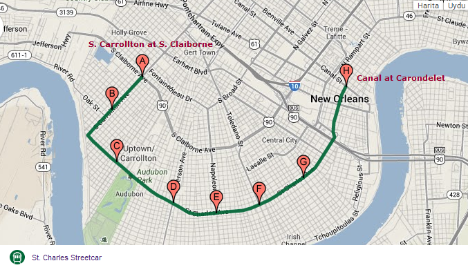 The St. Charles Line : 150 yıılık , St. Charles Avenue ve Carrollton Avenue üzerinde nostaljik eski model tramvaylarla romantik bir gezi için bulunmaz fırsattır.Yaklaşık 13 mil uzunluktaki hat ; Central Business District ( Corondelet - Canal Street ) üzerinden Updown - Carrollton bölgesine kadar uzanır. Hattın üzerinde ; tarihi anıtlar , Loyola ve Tulane üniversiteleri, Audubon & Hayvanat Bahçeleri , oteller ,alışveriş merkezleri ve restoranlar vardır..
