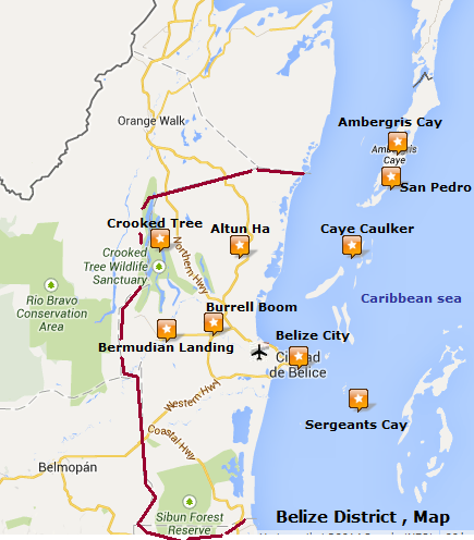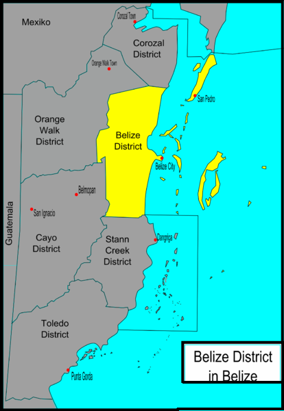 + 2 ) Belize City District : hava alanı , ana şehir merkezini , deniz kıyı ve adalar şeridini içine alır.