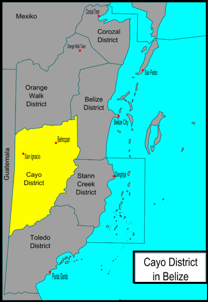 + 4 )Cayo District : Merkeze yakın ormanlık alanlarını , tarihi kalıntıları , Maya kalıntılarını , nehir ve mağraları içine alan macera bölgesidir.