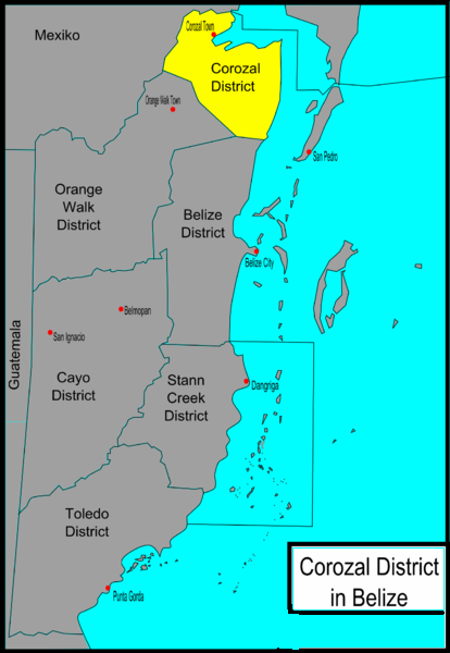 Belize City'nin kuzeyinde bulunan bölgenin merkezi yerleşimi Corozal Town'dur.Bölge nüfusu 35 bin dolayındadır. Bölge ; Chunox, Consejo, Little Belize, Louisville, Patchacan, Progresso, San Joaquin ve Xaibe köy ve kasabalarını içermekte.. Kıyı şeridine yer alan San Pedro adası coğrafi olarak Corozal İlçesi'ne yakın olsa da, aslında Belize District'in bir parçasıdır. Louisville ve Cerros bölgelerindeki Maya uygarlığının antik kalıntıları burada yer almakta ( Santa Rita Corozal arkeolojik - antik bölgesi ).Tarım özellikle şeker pancarı ve sanayisi en önemli gelir kaynağıdır.Son zamanlarda turizm adına olumlu gelişmeler de olmaktaıdır.