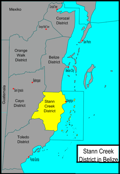 + 5 )Stann Creek District : Belize district'in güney bölümünde , sahil şeridi , adalar ve Honduras için ulaşımdaki bot ve tekneler için liman ve kıyı şerididir.