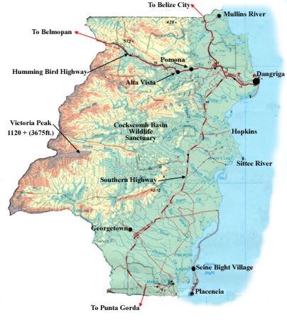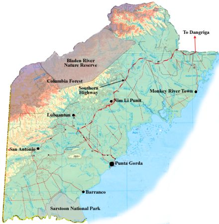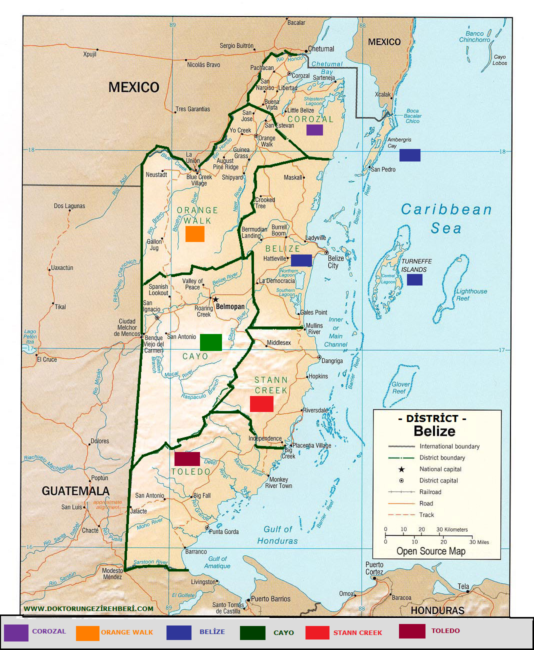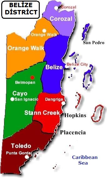 + 6 ) Toledo District :Ülkenin Guatemala'ya yakın kıyı şeridi..