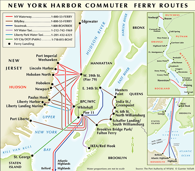 The New York Waterway / web : New York'tan Tarrytown'a , Weehawken, Hoboken, Jersey City, Long Island Queens yerleşimlerine çalışır..