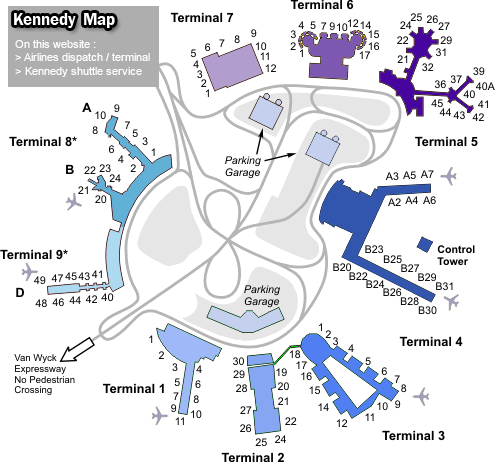 + John F. Kennedy International Airport , web1 , web2 , web3 , web4 , web5 , call 1-800-AIR-RIDE :