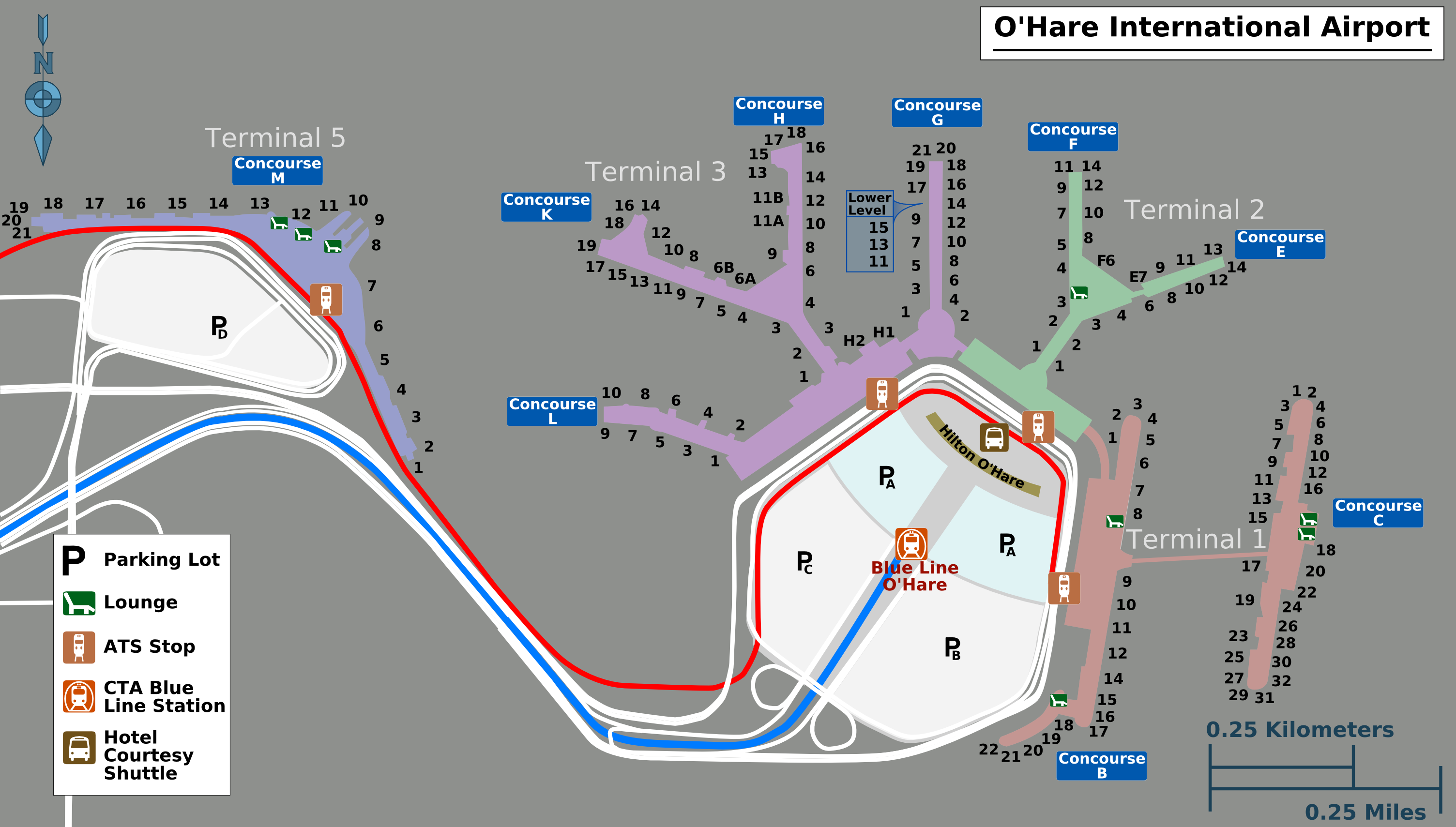 ATS Havaalanı Transit Sistemi / ATS :Havaalanı içinde en hızlı, en rahat ve en ekonomik ulaşımı sağlar. Bu ücretsiz 24 saat faaliyet sunan tren sistem ile havaalanı terminalleri, otomobil park yerleri ve Metra istasyonu arasında ulaşım sağlayabilirsiniz. Havaalanını bastan sona turlaması yaklaşık 9 dakika sürmektedir.