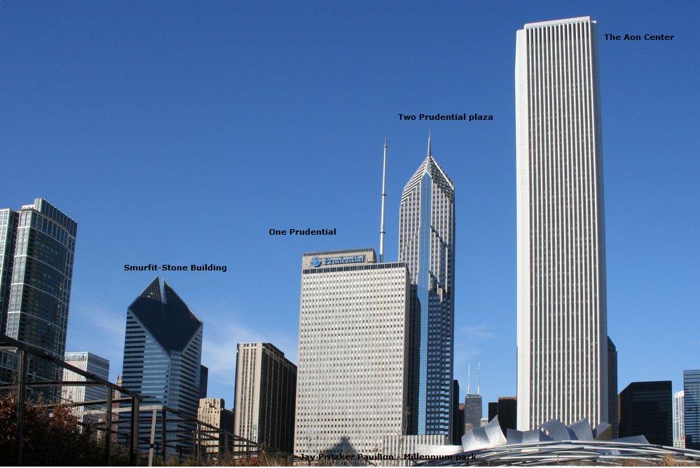 Hemen onun arkasında yükselen 346 m.lik dikdörtgen gökdelen de “The Aon Center-1973″ binasıdır (200 East Randolph Street)..