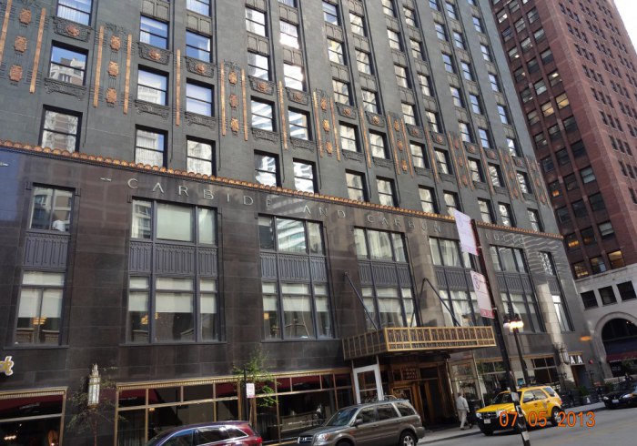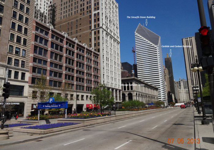 Bunlar arasında sol tarafta 230 North Michigan ‘da “Carbide and Carbon Building” görülür.