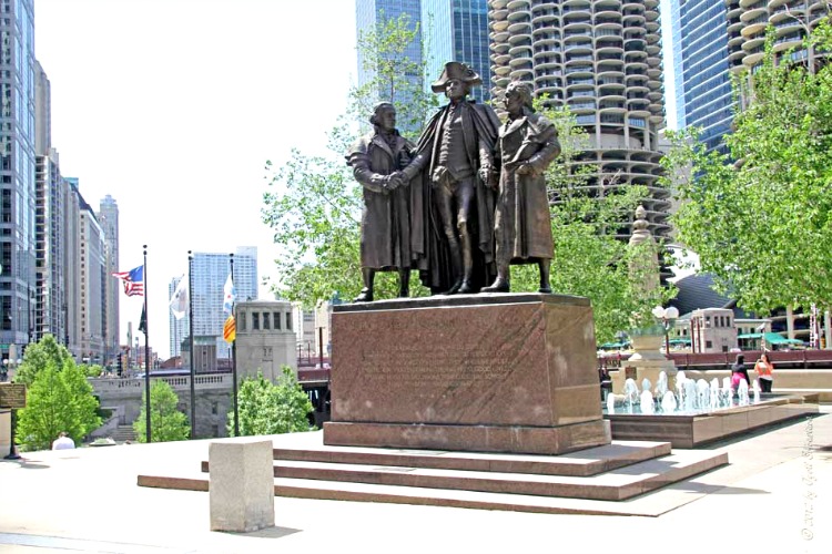 Anıt , granit zemin üzerine bronz heykel figürünü içeririr.1941 yılında Lorado Taft tarafından tasarlanan ve Leonard Crunelle tarafından tamamlanmış eserdir. Üniforması ile George Washington , İngiliz asıllı Robert Morris ile el sıkışırken , diğer yanında elini tuttuğu Polonyalı Yahudi göçmeni Hyam Salomon ile figüre edilmişitir.Her iki kişilik Amerikan devriminde finanas yardımı ile tarihe geçen iktisatçılar imiş..Mimar, heykeli Heald’ı onurlandırmak amaçlı yapmış? Anıtın hemen alt kısmında (merdivenle inin) Vietnam Savaşı gazileri müze alanı bulunur ( Vietnam Veterans Memorial )(2005)( Veterans’ Memorial Park – Chicago Riverwalk, Chicago, IL 60601 , Wabash Avenue ve State Street arasında yer alır – ki buraya Wabash Plaza‘da denmekte).