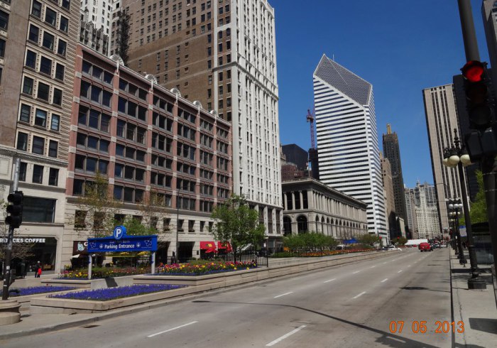 Muhteşem Mil’in bu kısımları Şikago’nun ünlü mimari yapılarını sık aralıkla içeren kısmıdır. Caddenin başı ve hemen sağ yanında ünlü bir binayıda görmekteyiz.