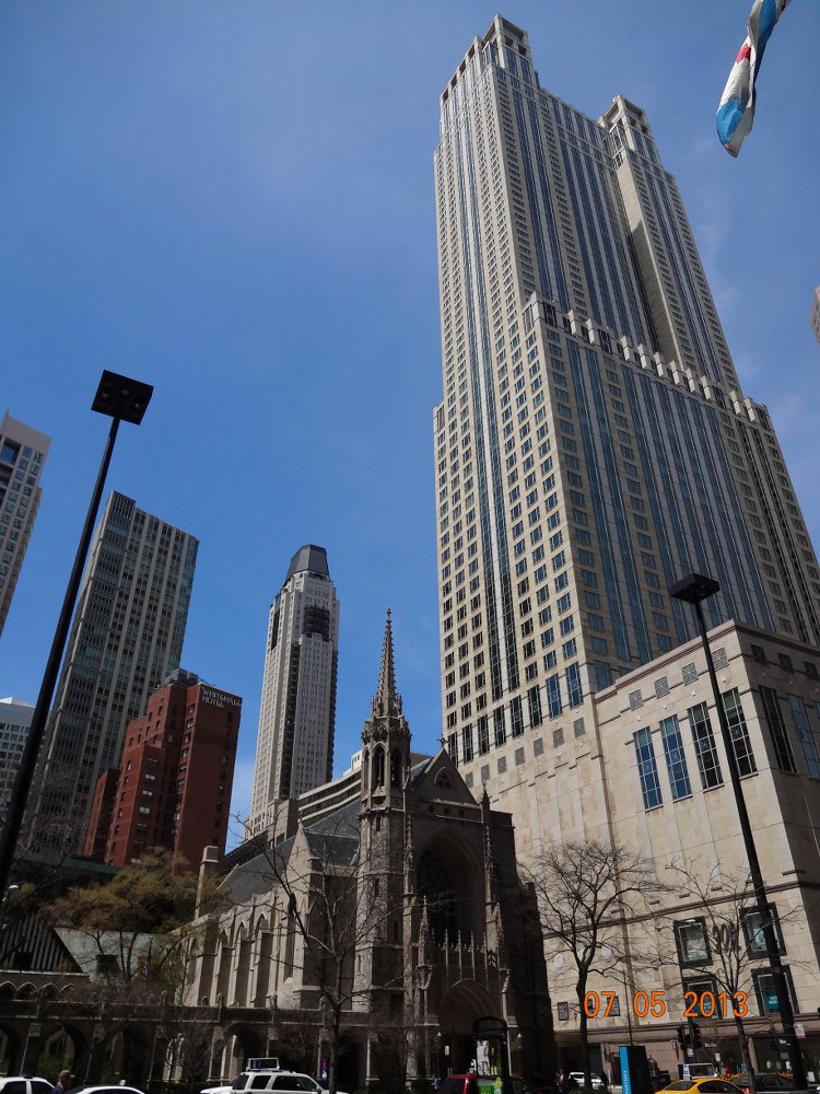 Fourth Presbyterian Church (126 E Chestnut St, Chicago, IL 60611)(Kilisenin ön duvarında 14 tane melek vardır ve her meleğin elinde farklı bir müzik aleti bulunur. Water Tower’dan sonra Şikago’daki en eski yapı, bu binadır) hemen bitişiğinde yer alan beyaz gökdelen “Four Seasons Hotel Chicago” dur ( 900 North Michigan Avenue ) ..