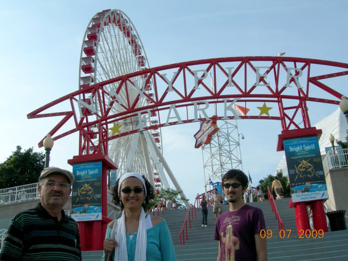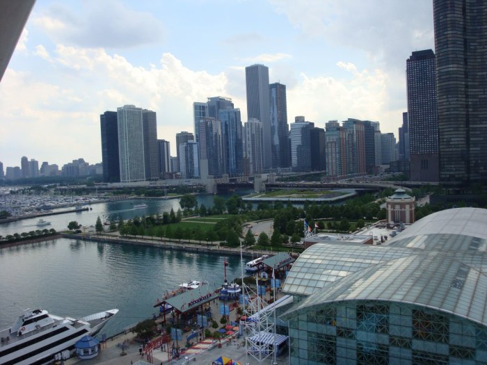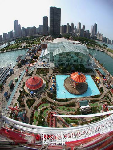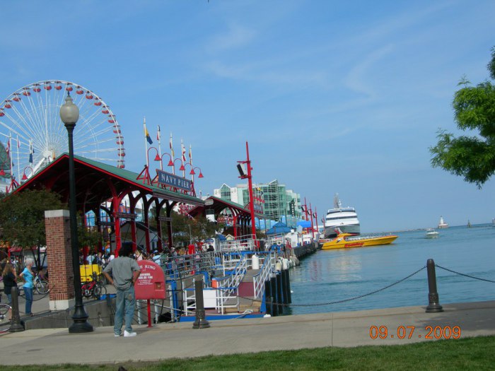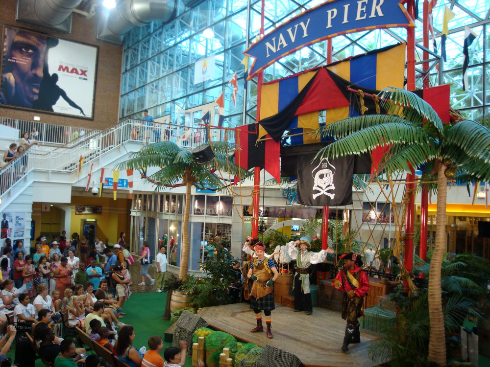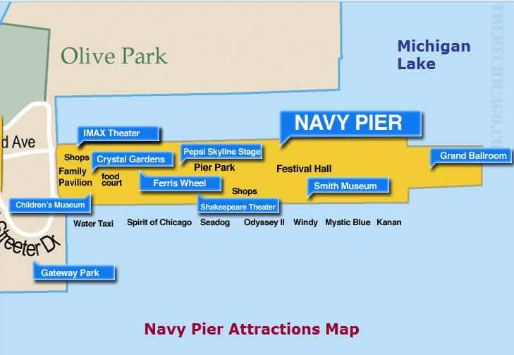 Navy Pear: Michigan gölü kıyısında, yaklaşık 1 km. uzunluk , 90 m. genişlikte sahil şeridine ( iskele ) sahip dinlenme eğlence ve park alanıdır. İskele ilk olarak: 1916 yılında yapılmıştır. İskele, zamanında dünyanın en büyük iskelesiymiş.Bu alan , I. Dünya savaşı sırasında, geçici olarak askeri bir tesis olarak kullanılmıştır. 1920’lerin sonlarına gelindiğinde ise, Navy Pear bölgesinin cazibesi azalmaya başlamış ve ziyaretçi sayısı düşmüştür. Büyük kamyonların rekabeti nedeniyle, limandan nakliye de gerilemeye başlamıştır. 1927 yılına gelindiğinde ise, iskele, Dünya Savaşı gazilerinin onuruna “Navy Pier” olarak isim değiştirmiştir. II. Dünya savaşı sırasında, burası yine donanmanın eğitim alanı olarak kullanılmıştır. Savaştan sonra ise, İllinois Üniversitesinin Chicago Şubesi olarak görev yapmıştır.