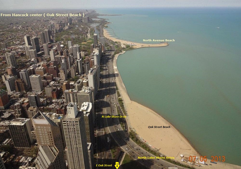 Magnificent Mile böylece kuzey sınırındaki E Oak Str ve E Lake Shore Dr. caddeleri sınırında sonlanacaktır. Bu noktada Michigan gölü yani Şikago’nun sahili ( Plaj ) gözükmektedir..