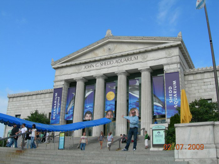 Şehrin tek kapalı akvaryum alanıdır. Burası 1930 tarihinde açılmıştır. Şehrin tanınmış işadamı John Graves Shedd: akvaryum kurulması için 1924 yılında: 2 milyon dolar para bağışlamıştır.