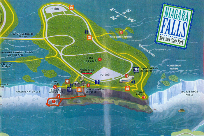 Ayrıca, Cave of The Falls (Rüzgarlı Mağaralar) ve Top of the Falls (State Park sınırlarındaki tek restoran) Goat Island sınırlarında yer alır.