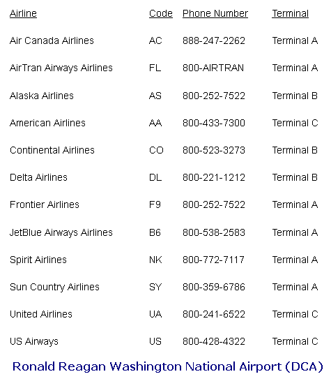 1 ) Ronald Reagan Washington National Airport (DCA) :
