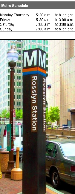 Metro / Metrorail - Subway sisteminde: “peak hours /Peak SmarTrip ” (yoğun saatler) ve “off peak hours /Off-Peak SmarTrip ” (yoğun olmayan saatler)( ücret : yere göre , 1.70 - 3.50 $ , +1 $ kart dolum ücreti ) diye ikiye ayrılan bilet uygulaması mevcut !..Kısacası en yoğun olan saatler daha pahalı oluyor. Örneğin; sabah ilk servis'ten saat 09.30'a kadar ve 15:00-19:00 saatleri iş çıkış saatleri ve en yoğun saatler olduğu için peak hours kabul ediliyor ( ücret :ulaşım mesafesine bağlı olarak 2.10 - 5.75 $ , + 1 $ kart dolum bedeli - 2013 yılı güncel ) ..Açılış : hafta içi = saat 05.00 , hafta sonu = saat 07.00 / kapanış : pazar - perşembe= saat 24.00 , cuma - cumartesi= saat 03.00