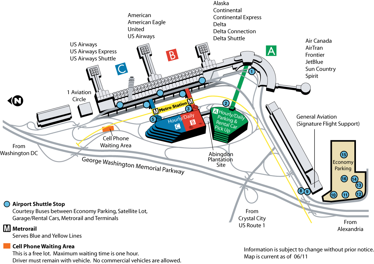 Hava alanı , Arlington County ( Virginia ) de olup , şehir merkezine 4 mil = 6 km. uzaklıktadır ( güneyde ).DC için şehir merkezine en yakın olan alandır.Kısa pist nedeniyle büyük tonajlı uçaklar için uçuşlarda sınırlama getirmektedir.Havaalanı iç hat uçuşları ve Kanada ve Karayipler için bir kaç uçuş sağlar.Ayrıca New york ve Boston için her yarım saatte bir uçuş bulabilirsiniz..Şehir merkezi ulaşımında Metro seçenektir.