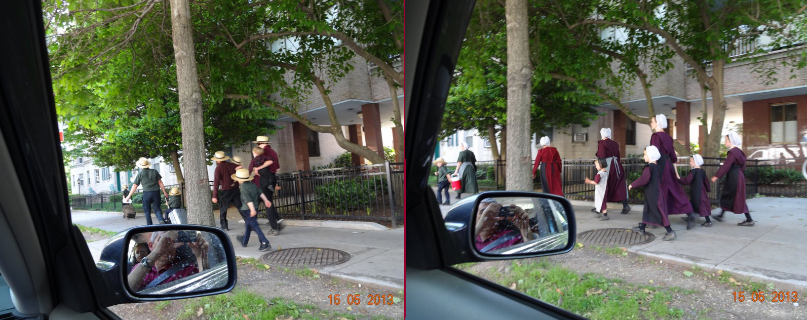 Kent girişinde bir Amish ailesinin kendine öz kıyafet ve sosyal yaşamlı topluluğunu fotoğraflıyoruz ( foto ).