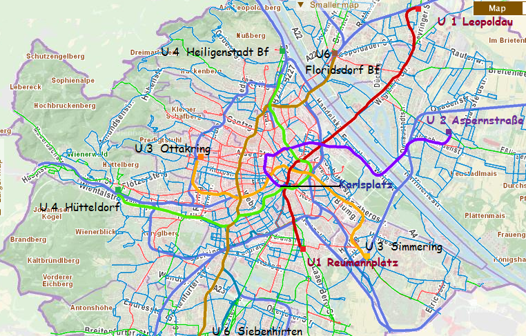 * U- Bahn ( metro ) araçları ; Günlük saat 05.00 ile 00.30 arası , 2 - 8 dakika aralıklarla çalışmaktadır. Modern bir sistemdir.Metro kent dışı ulaşımda da alternatiftir. U2 metro hattı ; Ringstrasse 'nin dıştaki çemberine yakın güzergahta daire çizer.