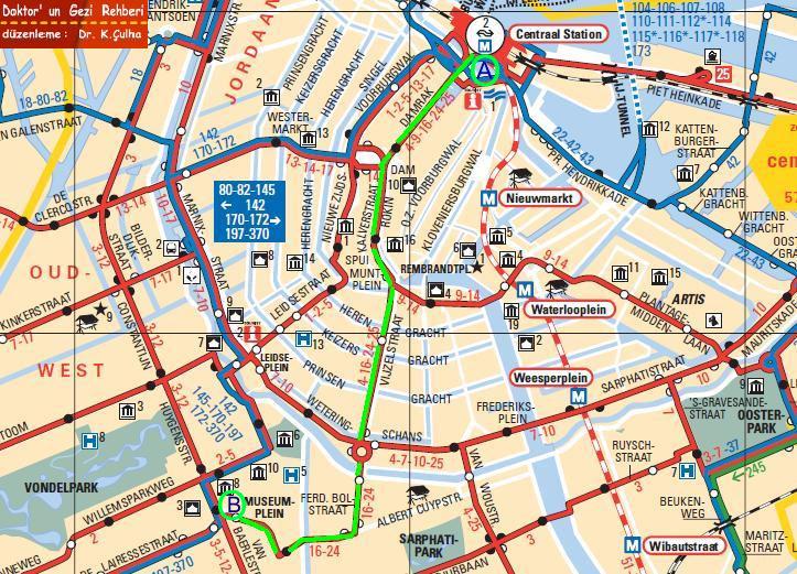 A - Central İstasyon ' dan başlayıp , B - Museum Plein ' de sonlanacaktır.