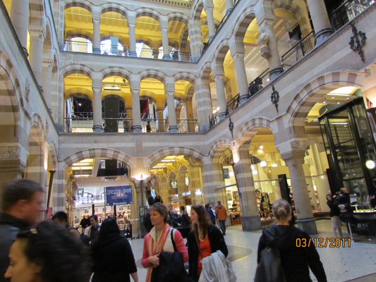 Dam meydanında iken Amsterdam 'ın diğer büyük ikinci alışveriş merkezini de görelim..Burası meydanda, sarayın arkasında kalır ( meydana 100 m. ). Meydanda iken ara sokak karşısında şatafatlı olarak binayı rahatlıkla görebilirsiniz. Bizim AVM 'lere benzer.. Hediyelik eşyadan , giyim kuşam her şey vardır. Her keseye hitap eder..