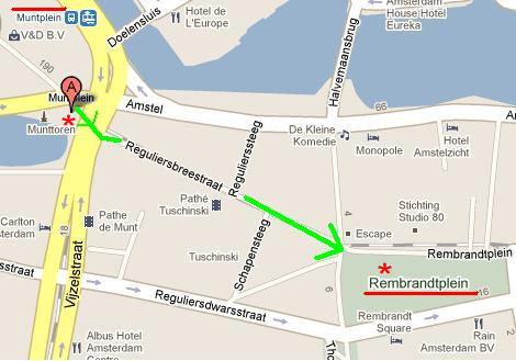 Munttoren ( Muntplein ) ile birlikte , Rokin caddesi sonlanır ve gezi yolumuzun devamını , yol üzerinde bulunan " Rembrandtpleine " ( 17a ) kaydıralım.Biraz caddemizden uzaklaşacağız. Ama burada iken bu alanıda gezimizden çıkaralım derim.