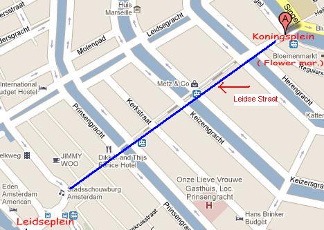 Bu cadde ünlü 3 kanalı ( Prinsengracht , Keizergracht , Herengrecht ) keserek sizi Singel kanal yakınındaki , Koningsplein ' e çıkaracaktır. Buranın az ilerisi de Flower market = Çiçek pazarıdır ( Bloemenmarkt ). Hatırlarsınız ; bulunacağımız bu bölge Muntplein bölgesidir. İsterseniz gezi yönünüzü buraya da çevirebilirsiniz.