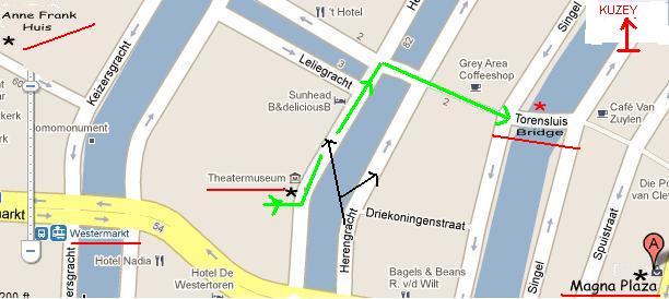 Theatre museum 'dan Herengracht caddesini takip ederek kuzey yönünde ilerleyip ilk sağa dönerek ; Magna plaza 'nın arkasında kalan ünlü " Torensluis Bridge " = köprüsüne ulaşırız. Burada Multatuli heykeli vardır. < 1800 ' lerde yaşamış, o dönem Hollanda'nın Endonezya sömürgesine karşı çıkan bir yazar imiş >. Köprü manzarasıyla hoş bir köprüdür, üzerinde cafe tarzı oturma alanı mevcuttur.