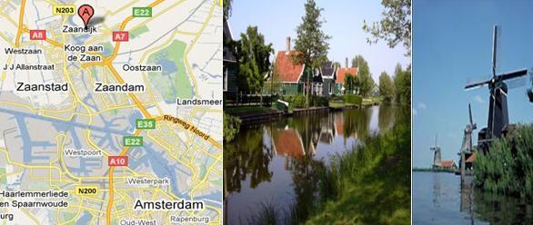 İlçe , Zaa Zaanstad nehri kenarındadır ( Zaandam bölgesi ). Amsterdama yaklaşık 15 km. mesafededir. Bölge 17 - 1 8 . yy. dan kalan ahşap çiftlik evleri , kanalları ve değirmenleri ile yaşayan bir müzedir. Amsterdam Central istasyondan trenle Alkmaar yönünde , 4 istasyon sonradır ( 20 dk . ) Burada 8 adet yel değirmeni bulunmakta..Neler görülmeli ; yel değirmenleri - hala çalışanları var , peynir yapım evleri , tahta ayakkabılar , burada iken pankek yemeli imişiz..
