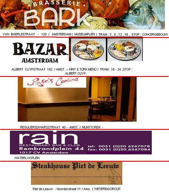 AMSTERDAM ' DAN BİRKAÇ RESTORAN BİLGİLERİ :