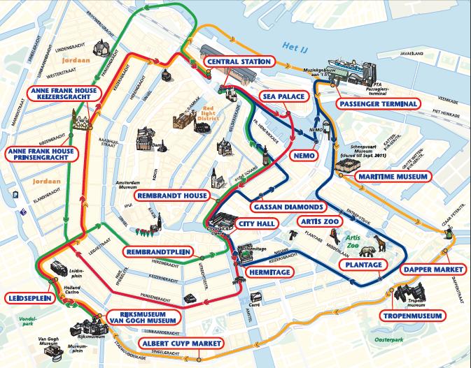 Central Station East > Sea Palace > City Hall > Hermitage > Rijksmuseum/Vam Gogh Museum > Leidseplein > Anne Frank House/Keizersgracht > Central Station East