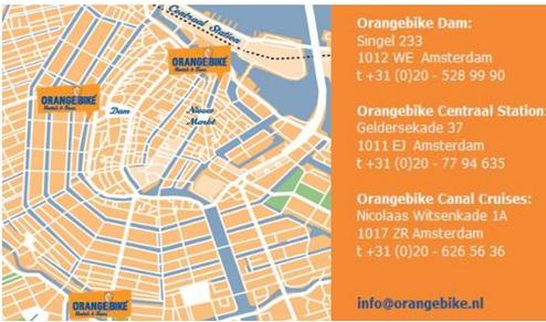 Amsterdam’da bisiklet kiralamak hiç de büyük bir mesele değil. Neredeyse adım başı bisiklet kiralama şirketine rastlıyorsunuz. Bisiklet kiraladıktan sonra şehri gezmek ve tanımak için iki alternatifiniz var. İlki bir euro karşılığında, kiralama şirketlerinde satılan tematik tur haritalarından birini alıp, zamanı özgürce kullanarak başınızın çaresine bakmak. Bu haritalar size bir rota çiziyor ve görmeniz gerekenler hakkında kısa bilgiler veriyor. Harita okumak konusunda iyi değilseniz, kanallar yüzünden bir örümcek ağını andıran kentin sokaklarında kaybolma ihtimali var.