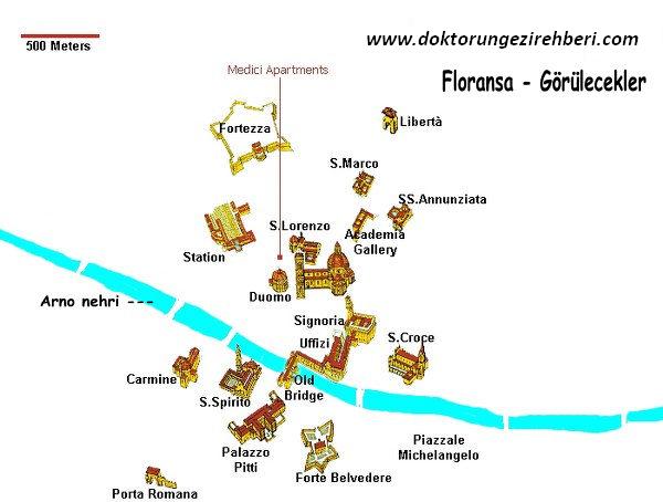 ** Gezi için Not : Floransa ' yı müzeleri hariç yanlızca açık hava müze ve ören yerleri olarak bakınca 1 tam günde gezmek mümkündür.Bu açık müze , bir merkezde ve büyük bölümü araç trafiği olmayan alanda toplanmıştır.Devreye tam anlamıyla müzeler girecek ise gezi süresini uzun tutmak gerekecektir.