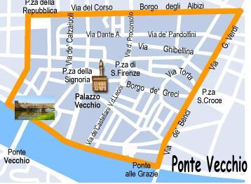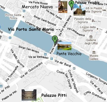 Mediciler Palazzo Vecchio ‘ u , Palazzo Pitti ‘ ye bağlamak için Vasari’ ye yürüyüş yolu olarak “ Corridoio Vasariano ” yaptırmışlardır.Bu yolun üstü kapalıdır. Eski köprüden Duomo’ ya kadar uzanan Via Porta Santa Maria , en işlek caddelerden biridir.Bu cadde Mercato Nuova ( yeni Pazar ) ‘ a açılır.Burası deri gibi hediyelik eşyaların satıldığı alandır.Burada “ Orsanmichele ” kilisesini de görebilirsiniz.