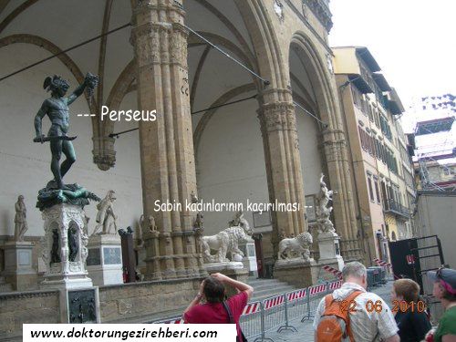 Bunun yanında “ Uffizi ” müzesi vardır.Buranın tasarımı Duomo mimari tasarımcısı olan Arnolfo di Cambio tarafından yapılmıştır.Palazzo Vecchio’nun sağ yanında Loggia della Lanzi ( signoria ) bulunur.Eski dönemde törenlerde memurlar burada seyirci olurmuş.Daha sonraları açık hava müzesine dönüşmüştür.İçerisinde Cellini ‘ nin Perseus heykeli ( kopya ) ,Giambologna nın ünlü eseri " Sabina kadınlarını kaçırma - tecavüz " heykeli yer almaktadır.