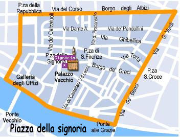 Bargello’dan güneye doğru ilerleyince geniş bir alana ulaşılır. Eskiden Floransa’nın politik ve sosyal yaşamının merkezi olan bu meydan günümüzde açık hava müzesi niteliğindedir.Şehir yöneticileri 13.yy.dan beri bu alanda toplanmaktadır.Yönetimin bu günkü konseyi " palazzo vecchio " burada bulunur.