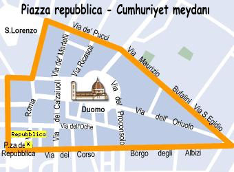 Daha aşağıya indikçe Via del Corsa ‘ nın , Via Roma ile kesiştiği alanda Floransanın Cumhuriyet meydanını = piazza repubblica ‘ yı görürsünüz.Burada meşhur cafe Gillivar - Via Roma üzerinde ! .. hemen karşısında da Savoy oteli ( ünlülerin kaldığı ) bulunur.