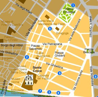 Danatello da burada yatmakta imiş..Bu duvarların arkası/ kilisenin içi müthiş bir müze ( ücretli – girin derim kişi başı 3 - 4 € galiba ).Kilisenin bitişiğinde günlük açık hava turist pazarı var. Bu alanın yakınları sizi işlek cadde olan Via Cavour’ a bağlar.Ara dar sokaklarda gayet hoş , bu sokaklarda hediyelik eşya satıcılarına vede küçük toplu taşıma araçlarına rastlarsınız ( sol altta turuncu )..