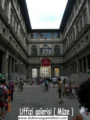Palazzo Vecchio ile Arno nehri arasında görkemli “ Uffizi Galerisi ” dar olan piazzale delgi Uffizi ‘ nin her iki tarafında uzanmaktadır.
